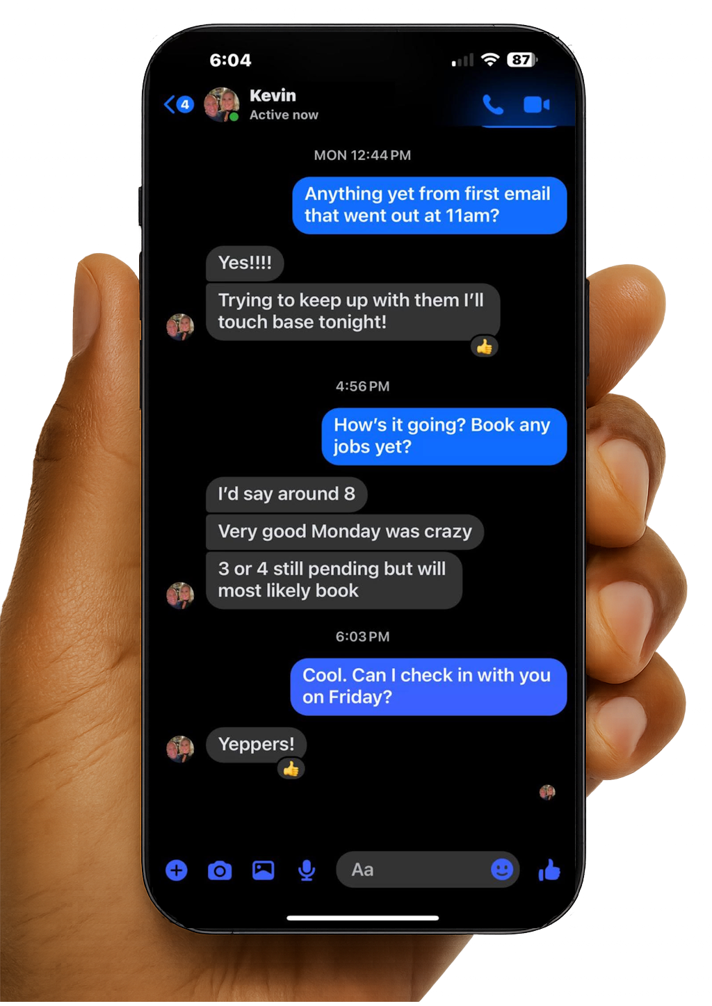 It started with a dead list, no ads, and no idea what to expect. One week later? A packed schedule — and the campaign paid for itself before we even talked about a position. And this is only one of the systems I manage in the background to bring in customers.